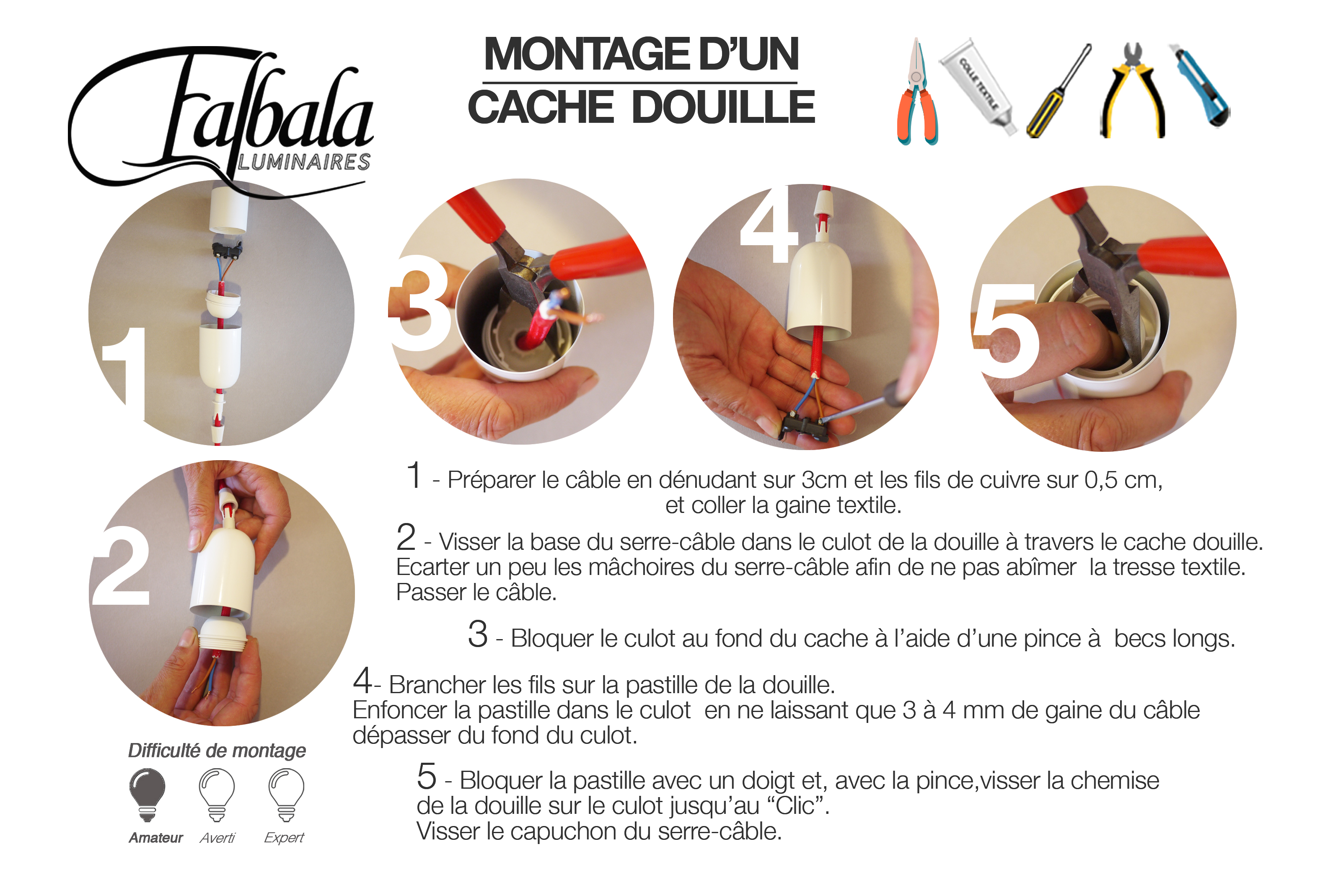 Ce kit comprenant : 1 douille lisse E27 (thermoplastique)*, 2 serre-câbles blancs , 1 écrou, 1 barrette de fixation,1 domino